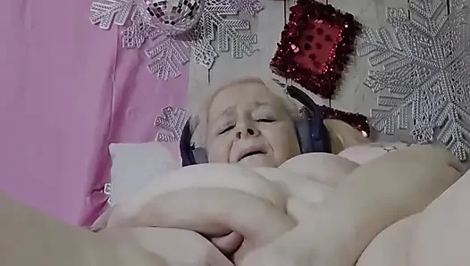 Горячая бабуля стонет, когда она скачет на дилдо, затем массивный член жестко